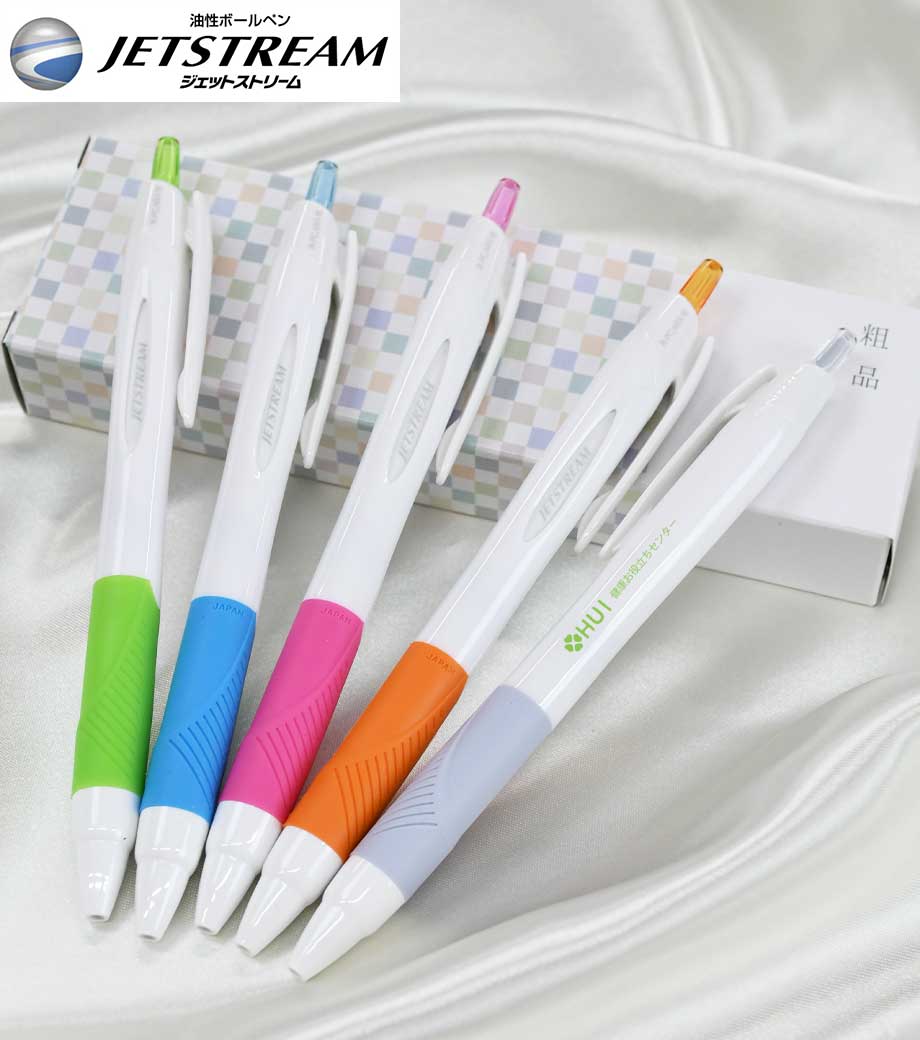 「三菱鉛筆 ジェットストリーム 0.7mm」は低粘度のインクで、なめらかな書き味をウリにした油性ボールペン。書き味や速乾性を武器に、ジェットストリームシリーズは年間1億本以上を売り上げる筆記具界のお化け商品です。お名入れ用の白軸なので学校名や企業名を入れてノベルティや記念品などにいかがですか。