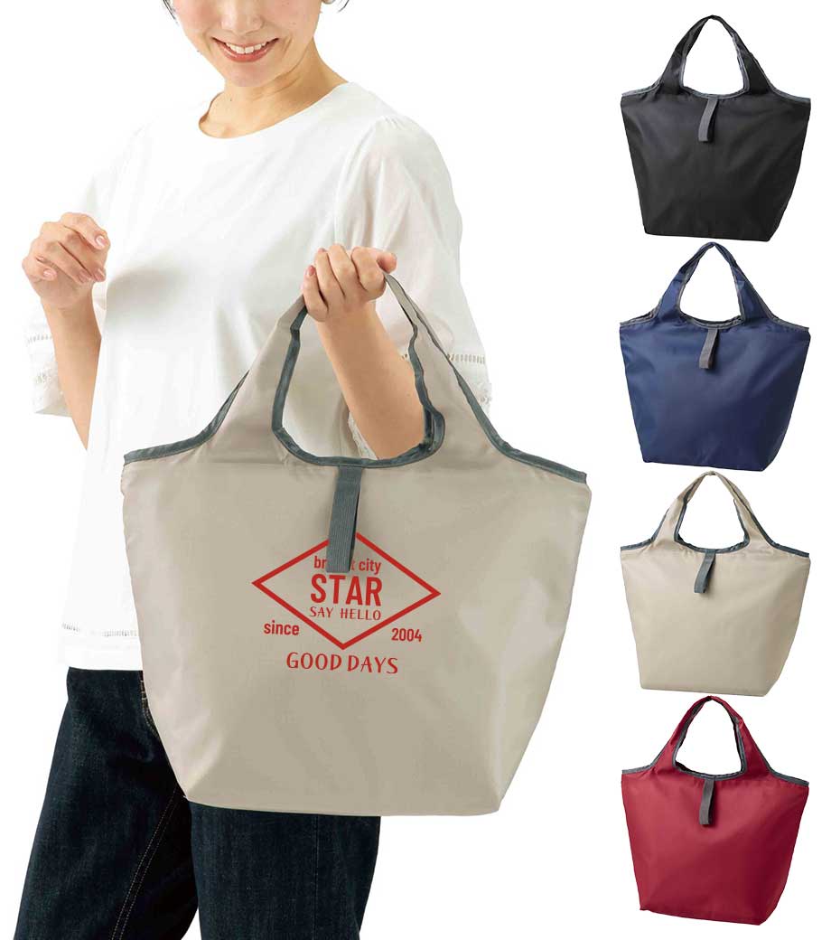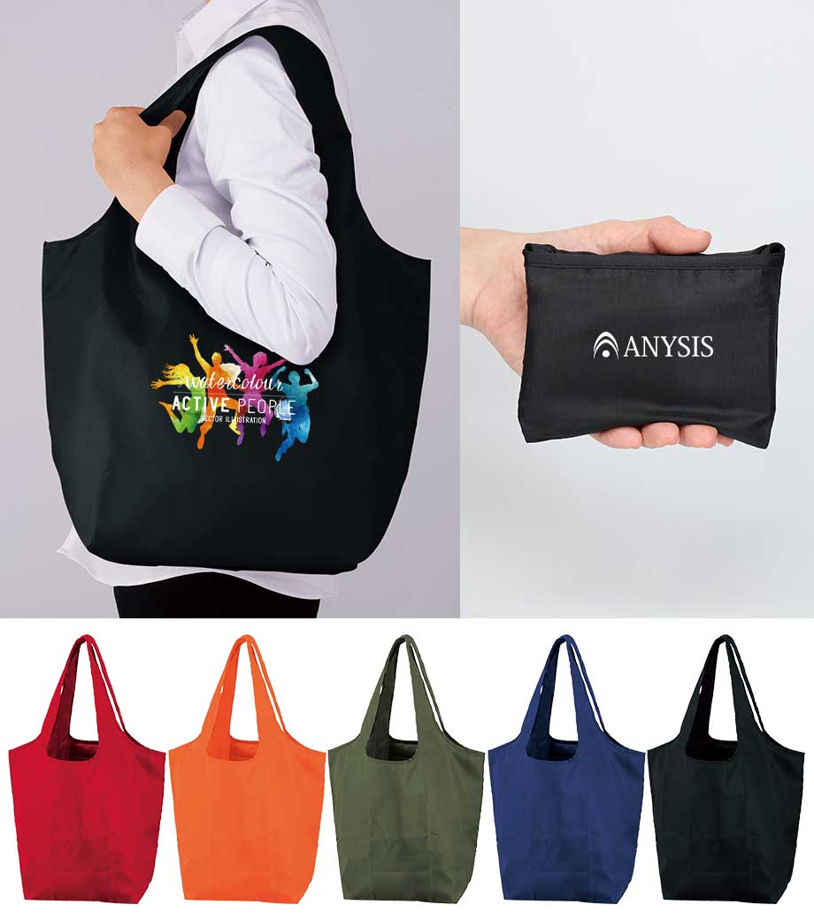 サブバッグとしても重宝するので、お店のロゴやキャラクターを印刷してノベルティにも人気があります。