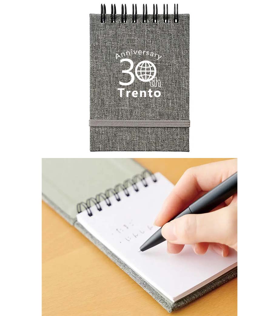 本体色はブルー、グリーン、グレー、ワインの4色からお好みの色を選べます。ビジネスのほか、スクールグッズとしてもおすすめですよ。周年記念品にいかがでしょうか。