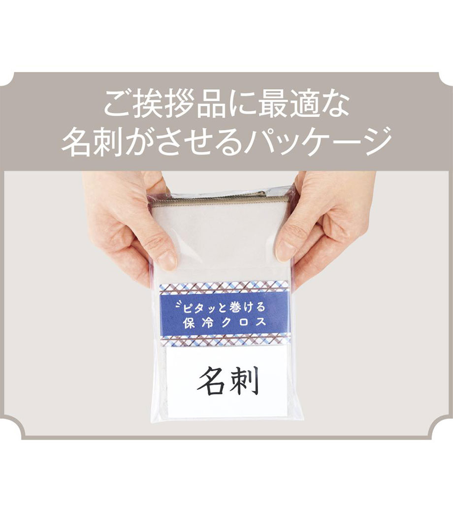 名刺やショップカードが入れられるパッケージ入りでご挨拶品やノベルティにもぴったり。実用性と気配りを兼ね備えたノベルティです。