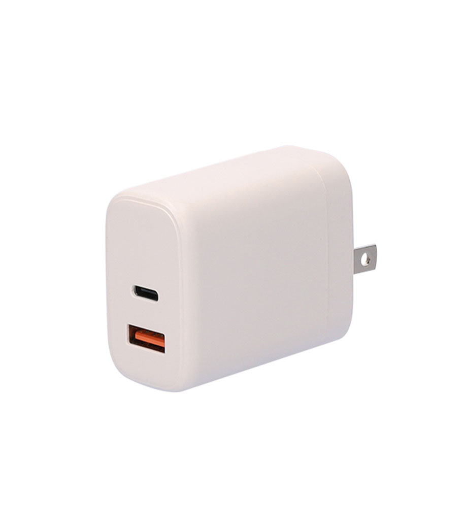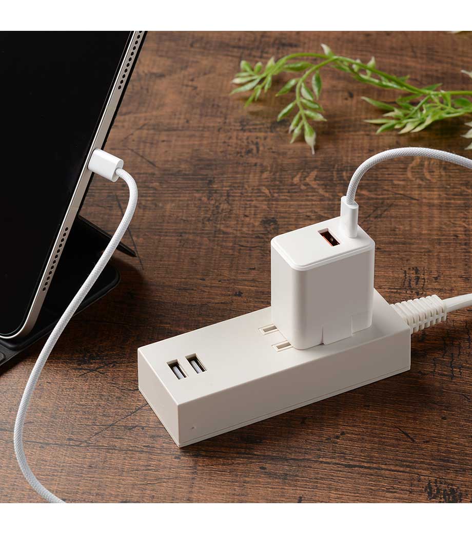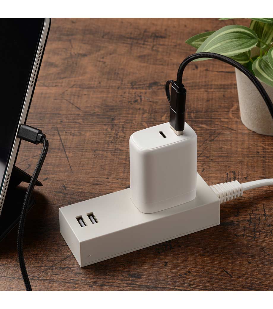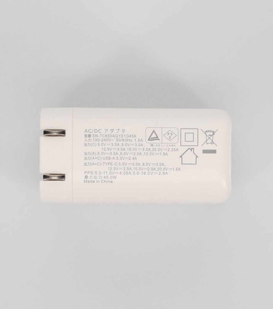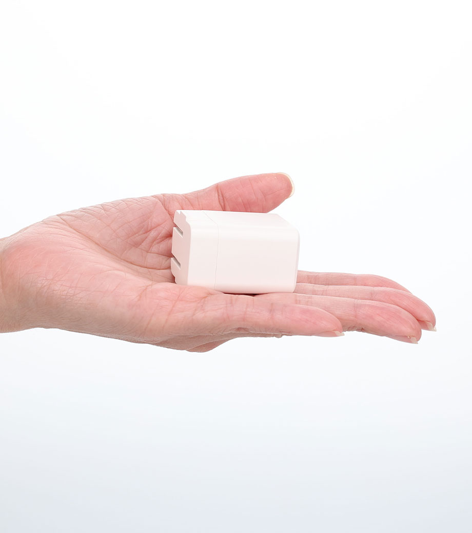 電源プラグを折りたたんで収納できる携帯に便利な充電アダプター。持ち運びやすく100V~240V対応で海外でも安心して使用できます。USB Type-CとUSB-Aの2ポート搭載で、同時使用の場合最大45Wの充電に対応。