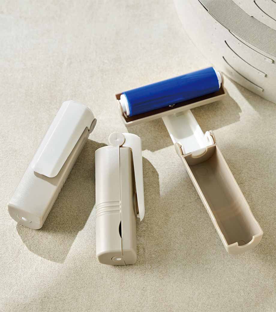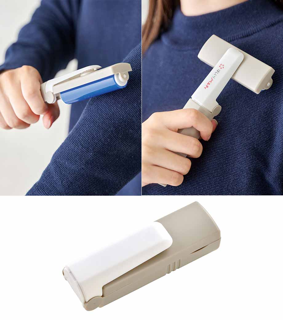 普段使いはもちろん、ポーチやバッグに入れてどこでも簡単にサッとお掃除できる粘着クリーナーです。粘着部分は回転するので縦でも横でも使えて便利!ゴミが付いて粘着力が弱くなっても洗って繰り返し使える優れものです。