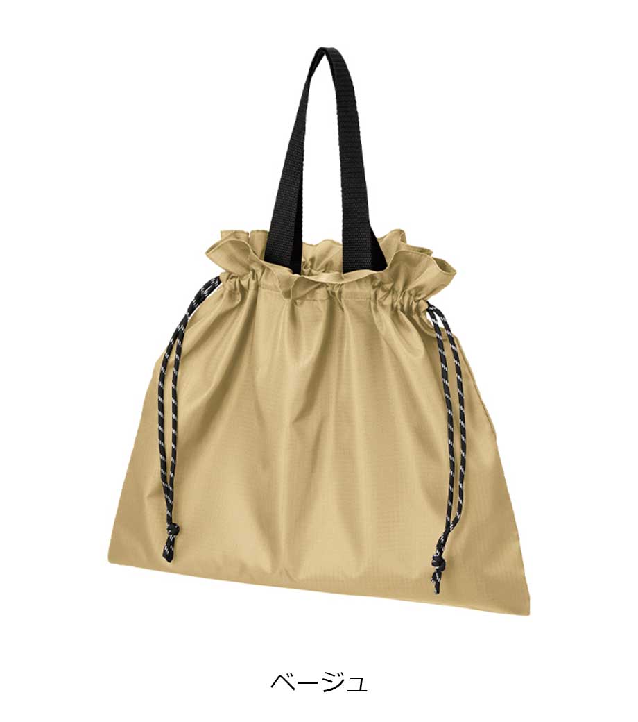 厚手で高い耐久性を誇るリップストップ素材のマルシェバッグです。かさばる日用品や食料品のまとめ買いにも応える大容量設計で、サイドマチが収納力をしっかりサポートします。内側のポケットに折り畳めばコンパクトにまとまります。