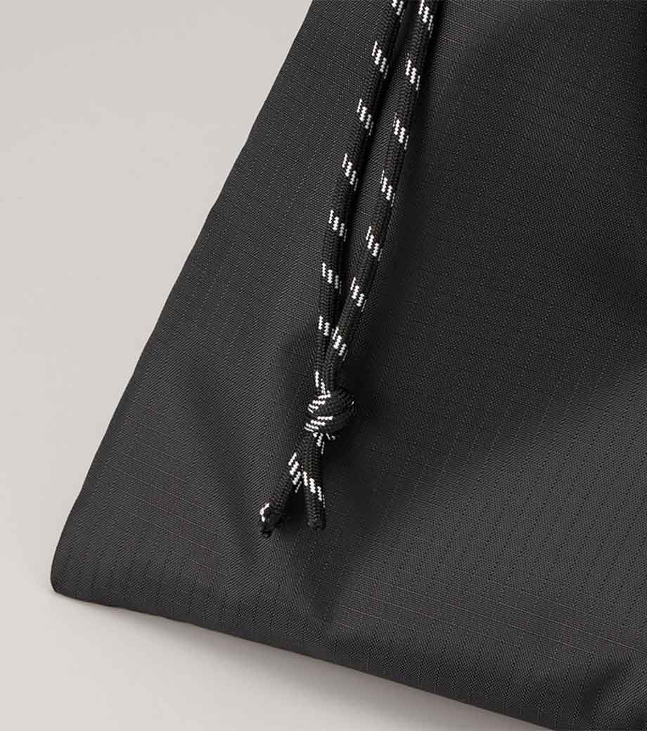 使いやすさとデザイン性にこだわった、ユニセックスな印象のリップストップ巾着バッグです。厚手ながら軽量で、裂けに強いタフな生地感が魅力。口元のギャザーと柄入りの紐がスタイリッシュなアクセントになります。A4サイズも収まる実用的なサイズ感で、ボトルや貴重品の持ち運びにも最適。