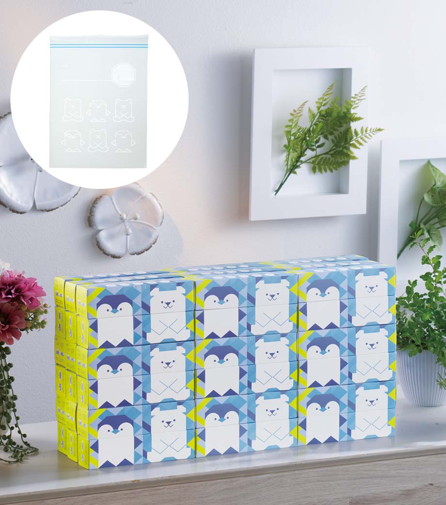 しろくまのイラスト入りパッケージは見た目もかわいらしく、幅広い年齢層に親しまれます。安価で配りやすいバラマキノベルティとして季節の販促品におすすめです。