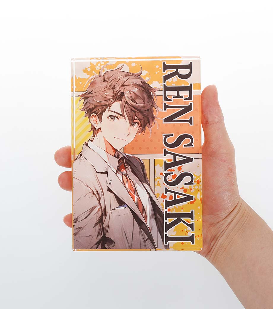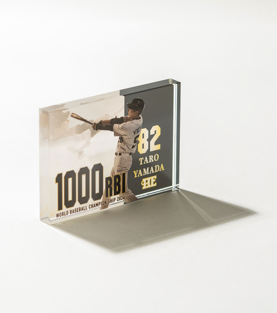 表面に1色で名入れ可能です。アーティスト名やグループ名、ショップのブランドロゴなどを印刷するだけで、オリジナルグッズが簡単に制作できます。物販品だけでなく、購入特典や周年記念品といった販促品にもおすすめです。