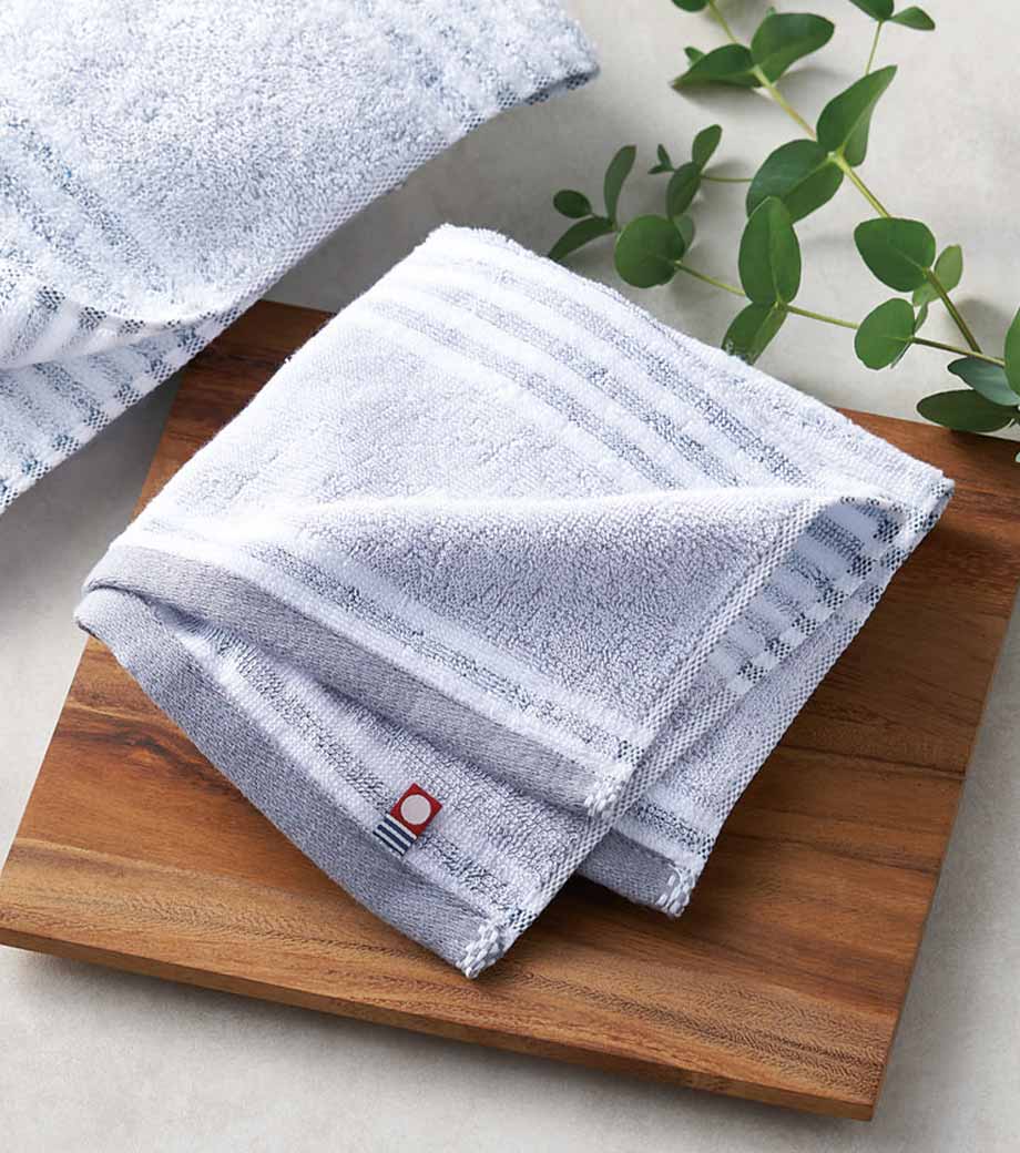 タオルの名産地として有名な今治製のハンドタオルです。ハンカチより少し大きめのサイズなので、しっかり水気を拭き取れます。独自の審査基準をクリアした上質なタオル生地は高い吸水性を誇り、やわらかな肌触りです。