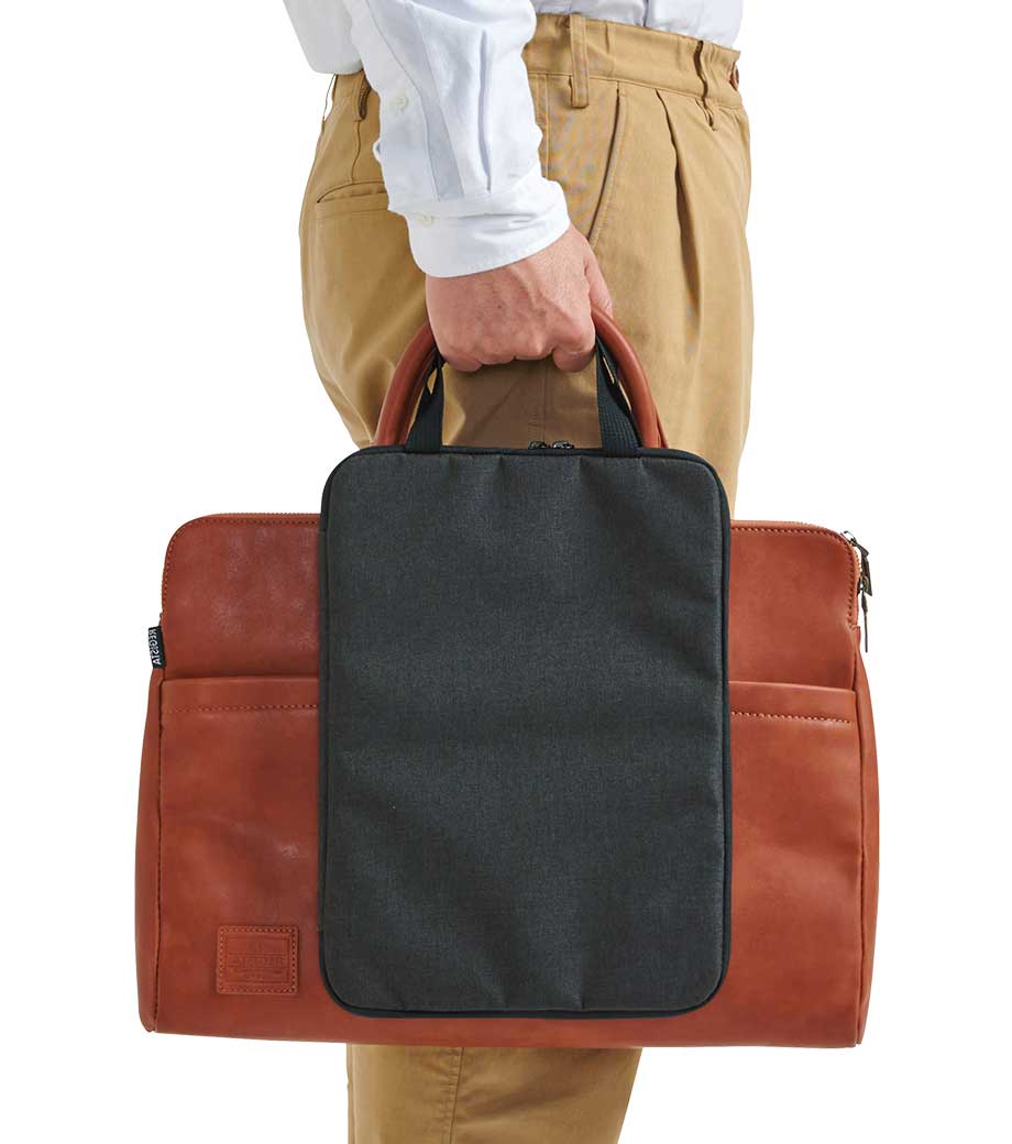 全体を緩やかに曲げられる程度の硬さで軽く、無駄な部分が一切ないので、ビジネスバッグがぐっと軽く使いやすくなること間違いなしです。