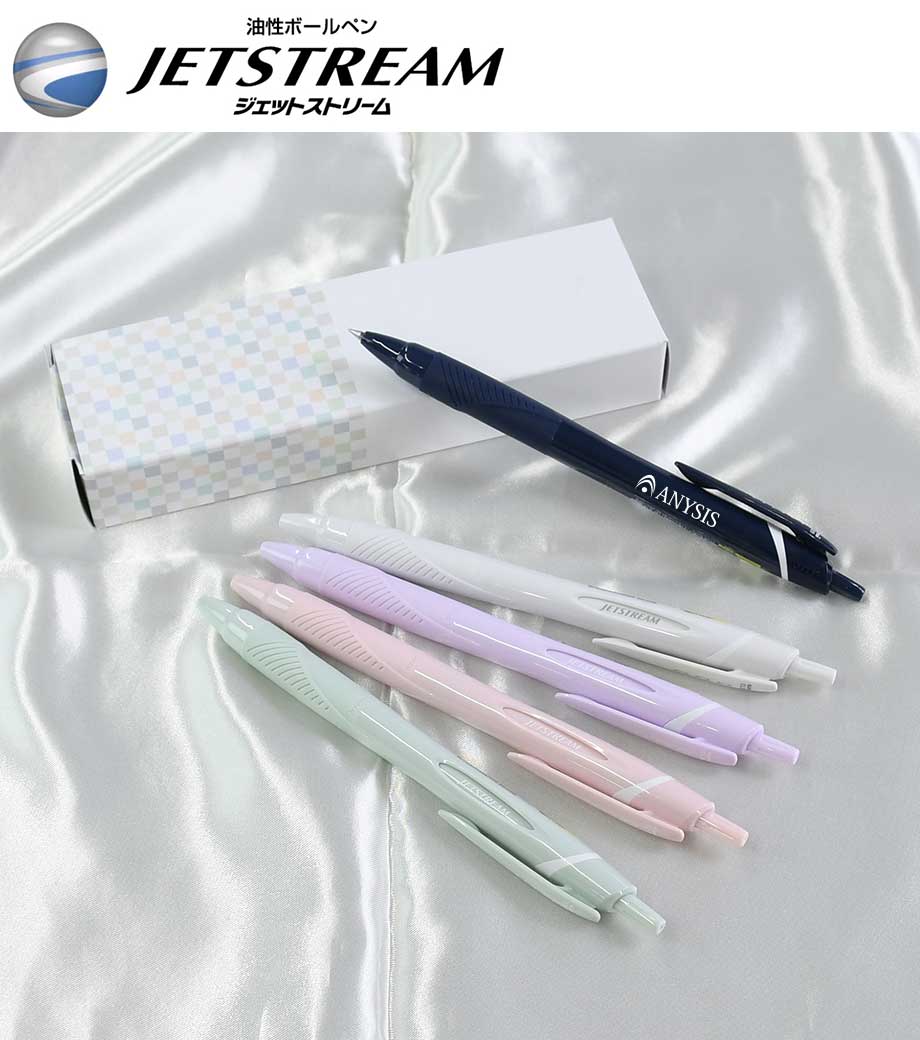 三菱鉛筆 ジェットストリーム 0.5mmは、油性とは思えないなめらかな書き心地がウリのボールペン。速乾性があり、一般的な油性インクよりも濃くしっかりとした字が書けるのも特徴です。いつでもどこでもサッと筆記できるノック式ボールペンは、年代性別問わずもらって嬉しいノベルティ。海外でも支持されている大人気商品です。