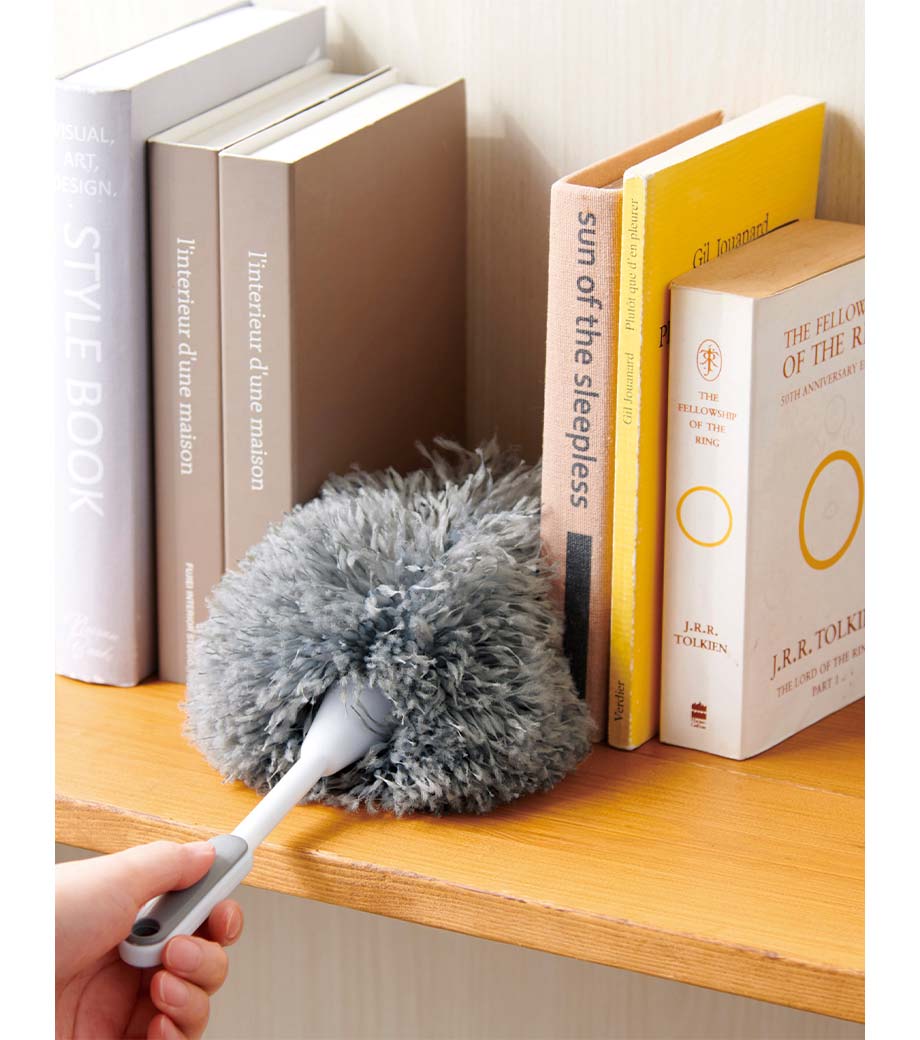 ふわふわの繊維がホコリをしっかりキャッチするハンディモップ。気になる場所をサッとひと拭きでキレイにできます。使わない時は柄を折りたたんで省スペースに収納できる便利設計。掃除用具の出しっぱなしを避けたい方にもおすすめです。デスク周りやテレビ台、棚の上など、日常のちょっとしたお手入れにぴったり。