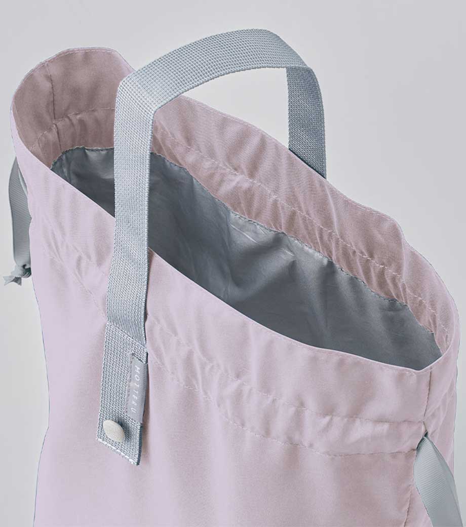 四角い底マチだからお弁当箱が真っ直ぐ入れられ、ペットボトルも横に入ります。ランチタイムの外出にも大活躍!小さなお子さまから幅広い年齢層で使えます。