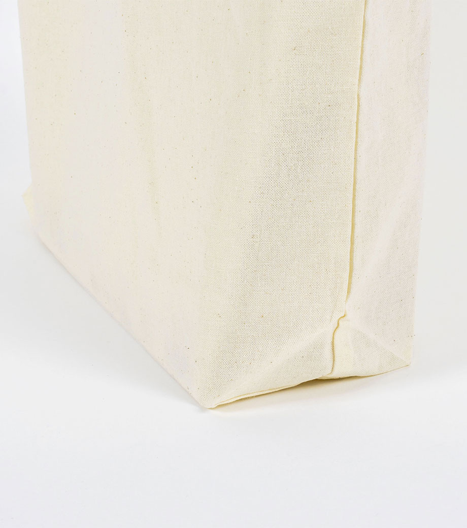 マチあり舟底タイプのコットントートバッグ。名入れ印刷OKで、実用性が高く販促・ノベルティに人気です。