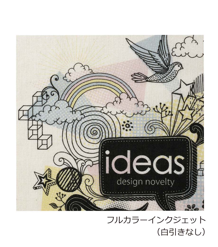 1色やフルカラーでの名入れ印刷ができます。印刷範囲が大きいので、SP効果もバッチリ。低価格なので、予算を抑えながらトレンド感のあるノベルティが作れます。