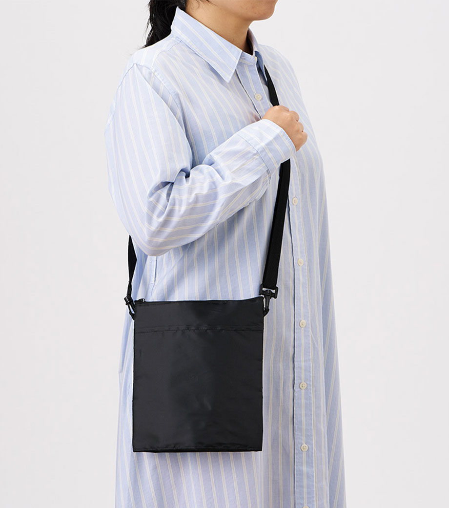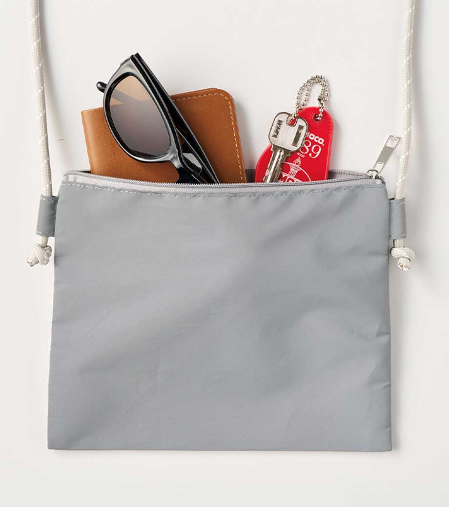 フラットな形状のサコッシュは、お財布やスマホなど最低限の荷物を入れるのにベストなサイズ感。通勤・通学時に貴重品を入れるサブバッグとして日常使いしてもらえます。