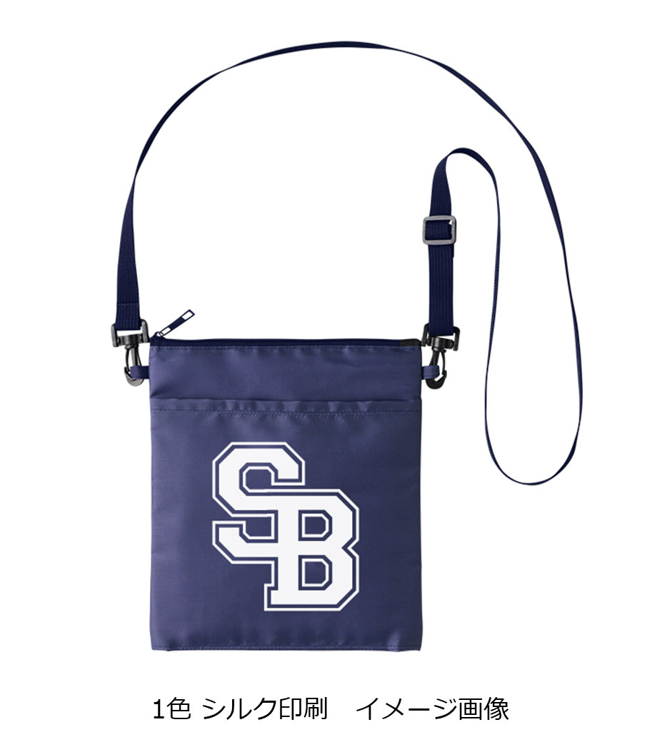 ポケットに1色で名入れ可能。シンプルデザインで大きめなロゴが映えます。オシャレで実用的なオリジナルサコッシュをノベルティにしてみませんか。