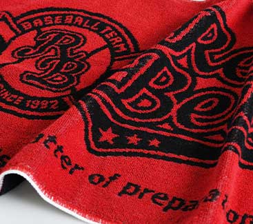 厚みのある綿100%今治産の高級感とビジュアル面のインパクトが特徴のタオル。企業の周年記念品や卒業記念品だけでなく、スポーツチームの応援グッズやライブの物販品などに人気です。