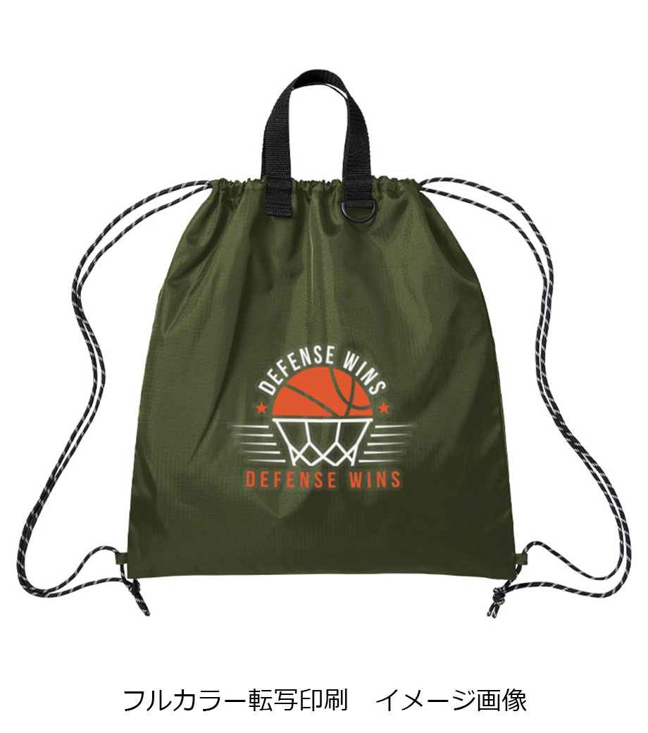 表面にはオリジナル印刷が可能。シンプルで名入れが映えるので、オリジナリティの高いナップサックが制作できます。