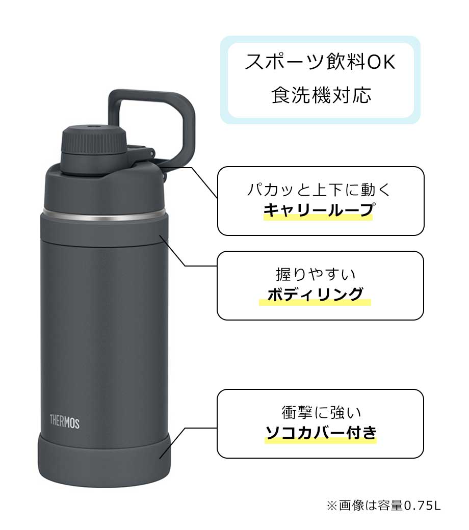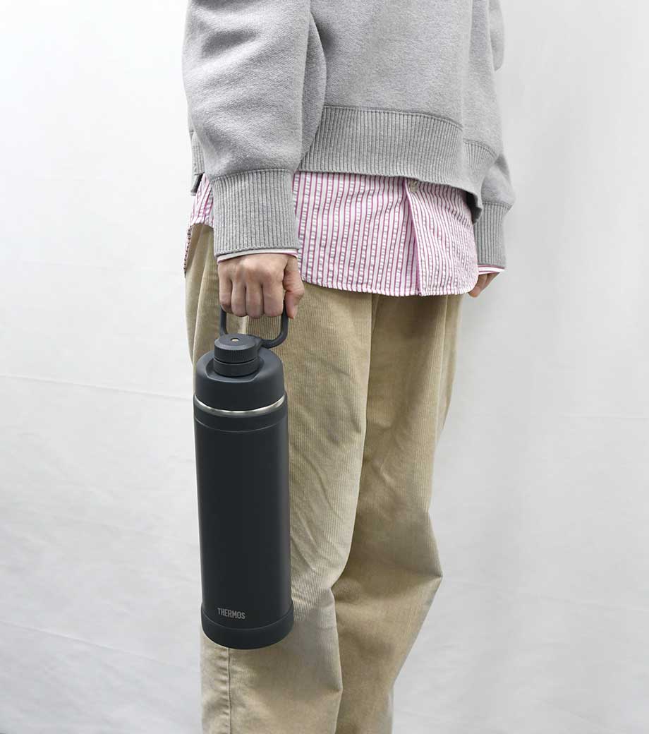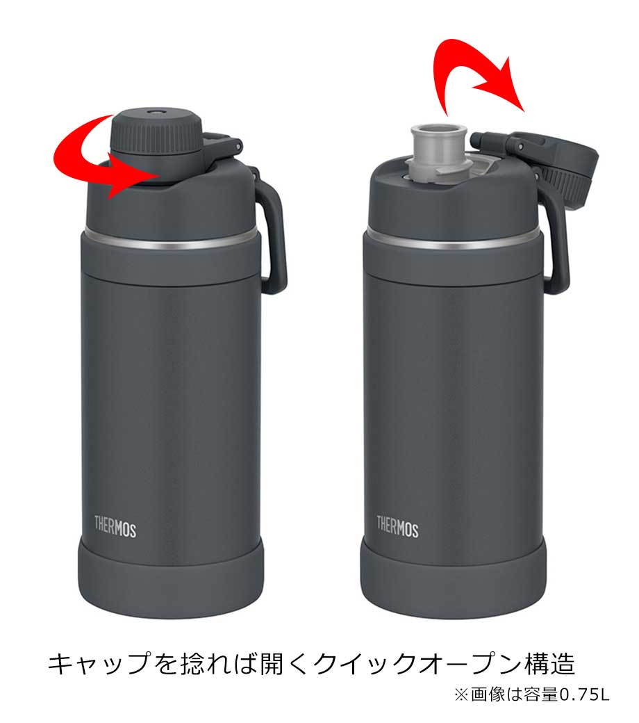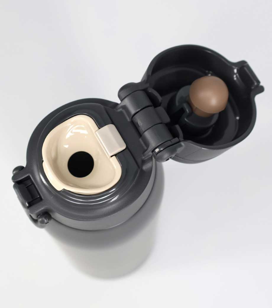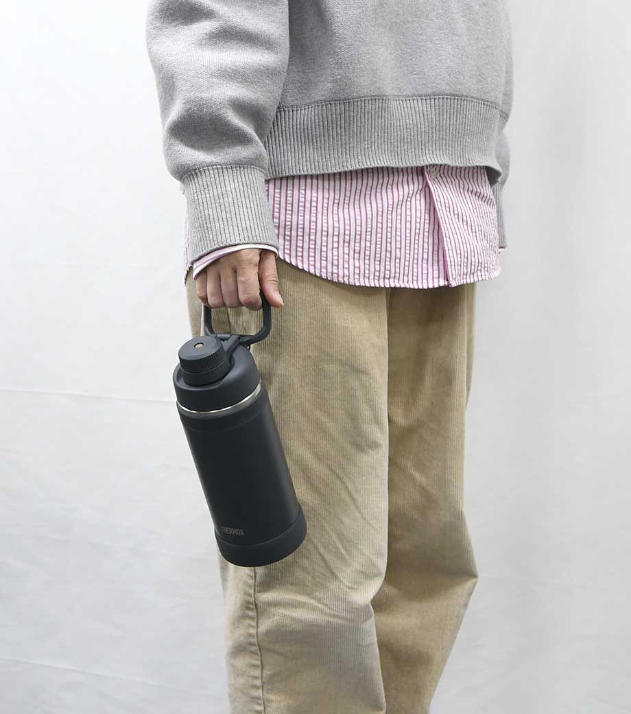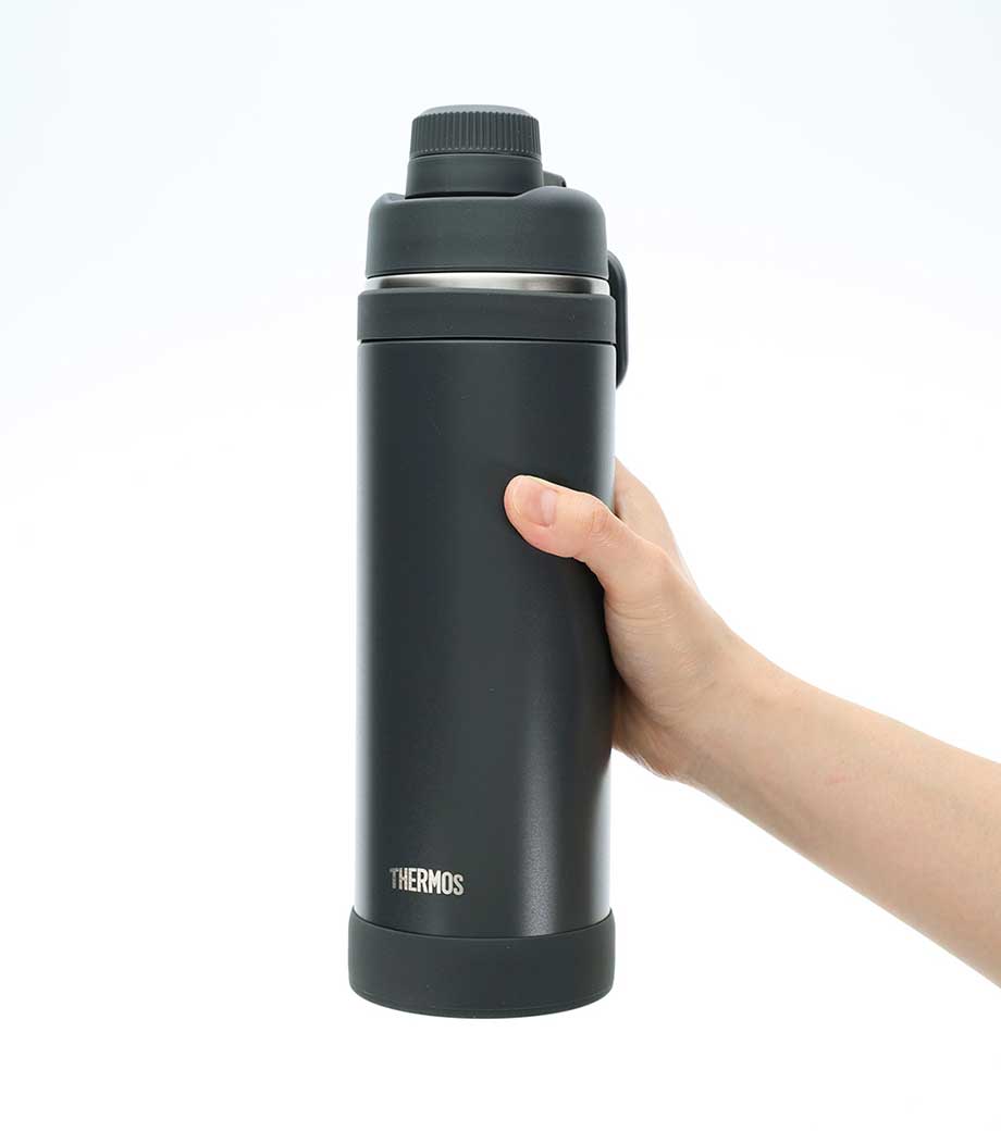 ワンプッシュで手軽に水分補給できる、真空構造の保冷温ステンレスボトルです。容量はペットボトル1本分の約500mlで、通勤・通学からスポーツシーンまで幅広く使えます。誤ってフタが開くのを防ぐスライドロック付きです。広口で氷を入れやすく、冷たい飲み物の温度も長時間キープ。底面にはすべり止めが付いており、デスクでも安定して置けます。
