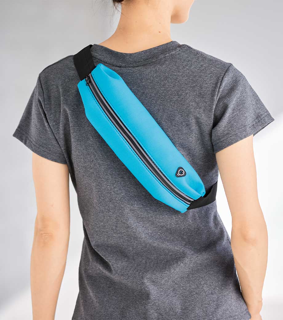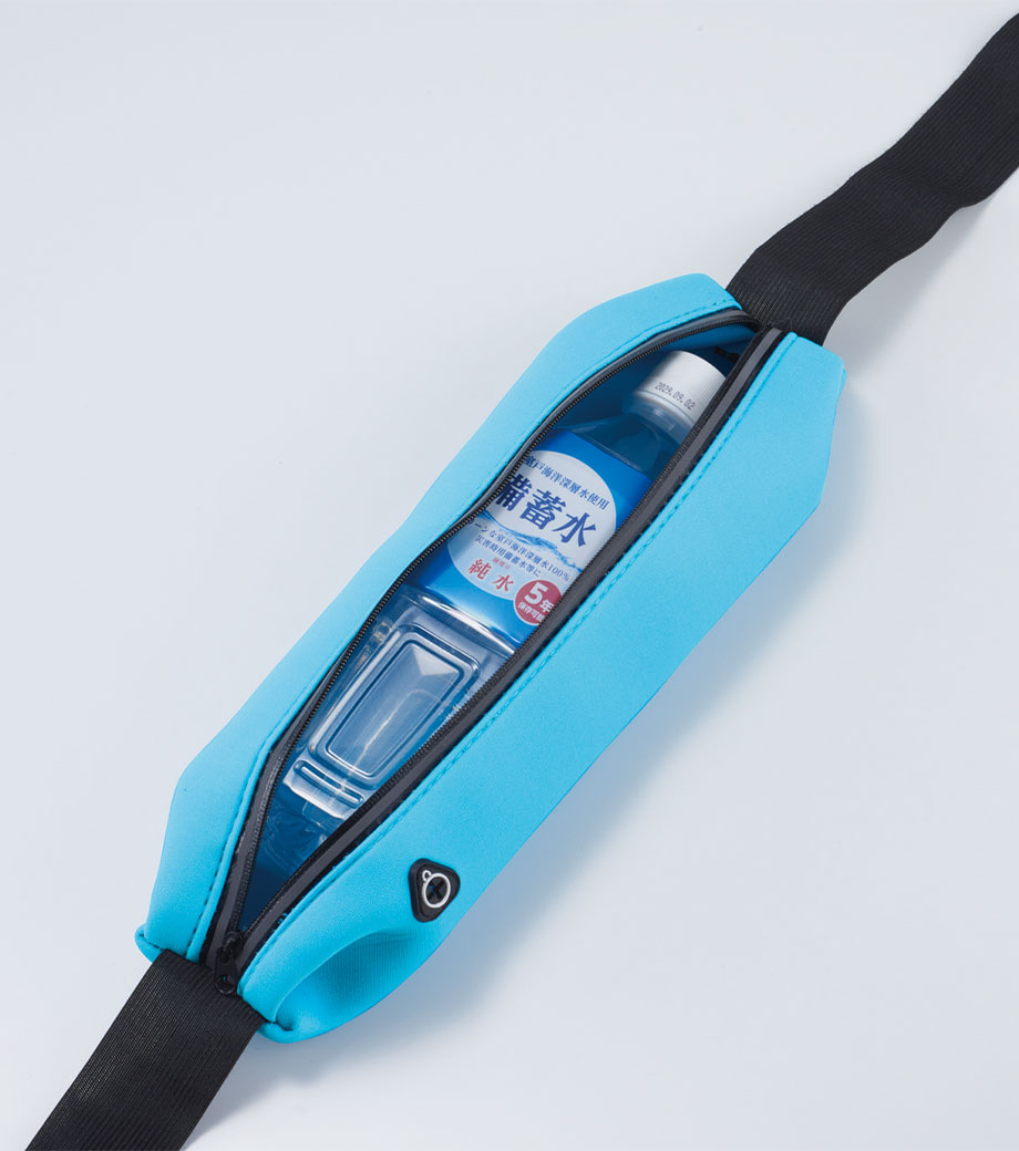 フラットなバッグに伸縮性のあるベルトでフィット感が高く、揺れを気にせずランニングを楽しめます。ウエストポーチはもちろん、長さを調節してショルダー型にも変えられます。音楽を楽しみながら走りたい人に嬉しい、イヤホン専用穴付き。