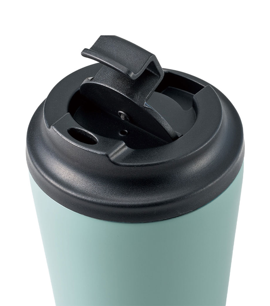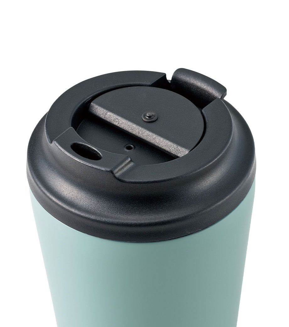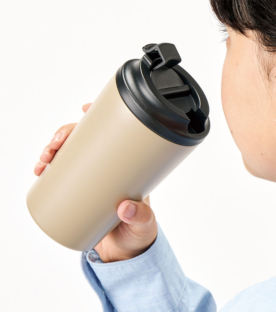 飲みたい時にサッと開けられる蓋付きの真空二重構造タンブラー。ステンレス素材で保冷保温に優れています。容量は普段使いに最適な400mlです。蓋はスライド式で簡単に取り外し可能なのできれいに洗えて衛生的です。