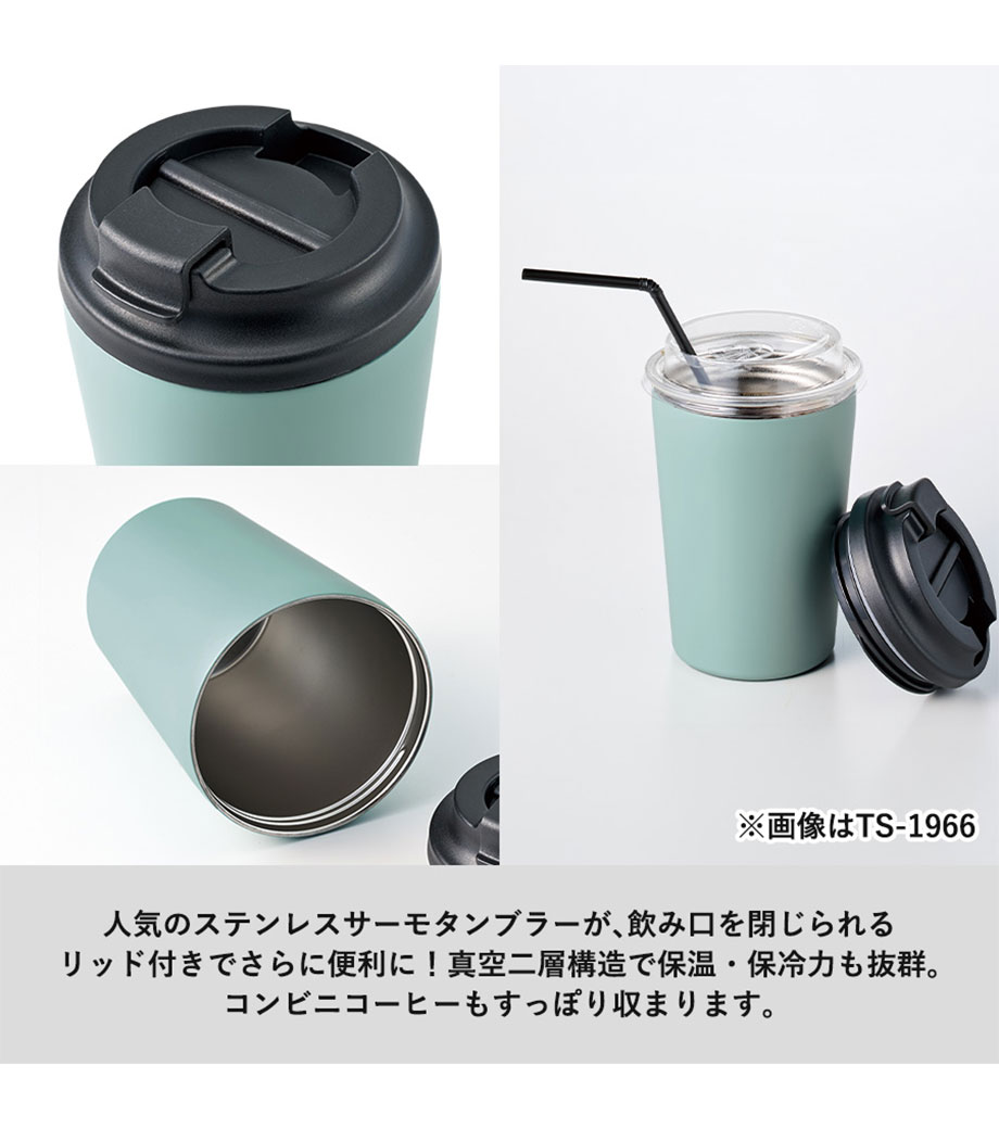 フタ付ステンレスサーモタンブラーは、シンプルなデザインに蓋のついたサーモステンレスタンブラーです。保温冷がしっかりでき、スタイリッシュなデザインで使い勝手も抜群。