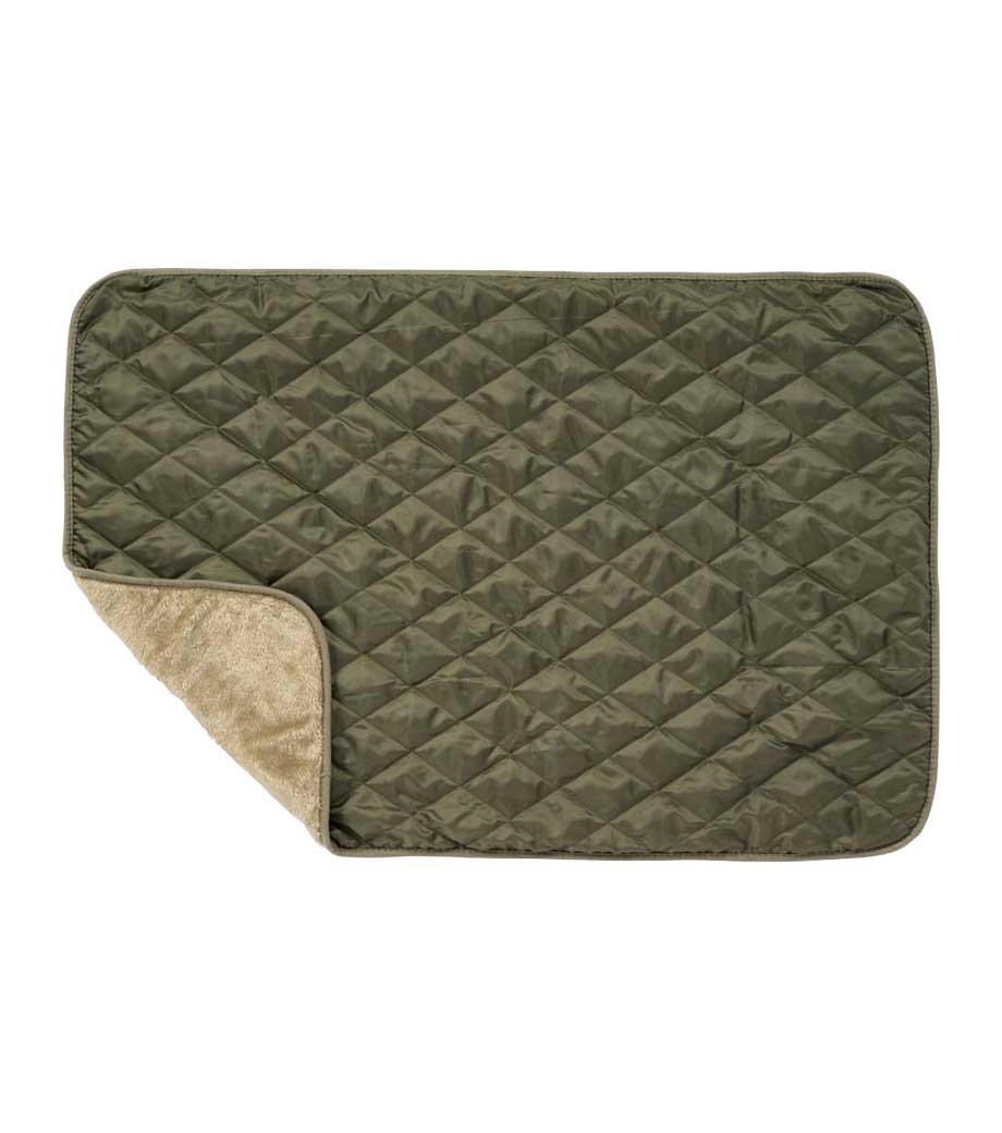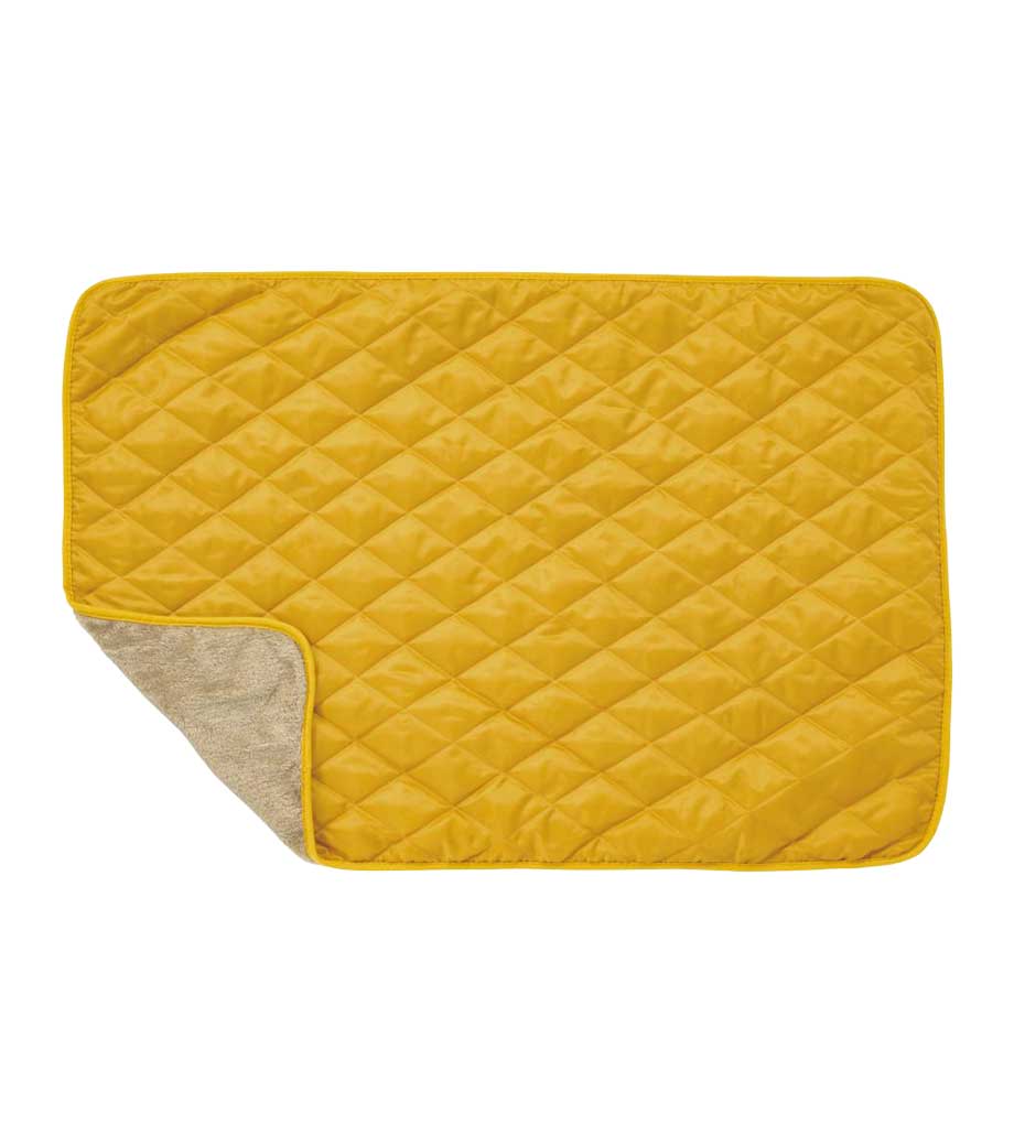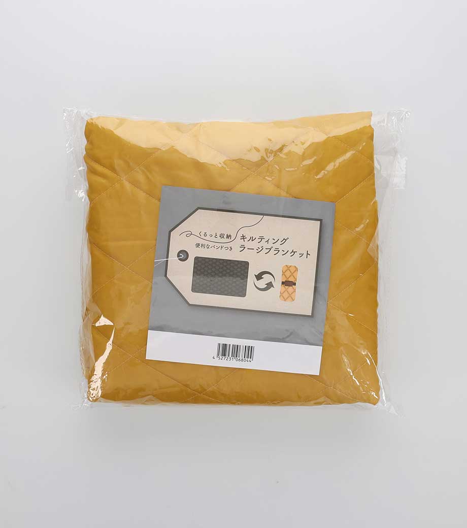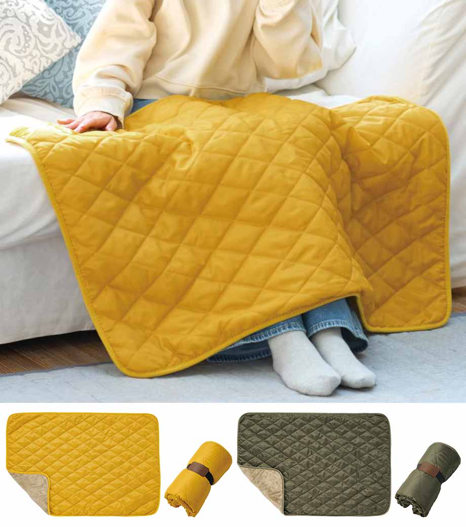 キルトフリースブランケット(巾着付)は、表はキルティング、裏はフリース素材に中綿が入った三層構造。ダウンジャケットのように暖かく、風を通しにくい極上ブランケットです。