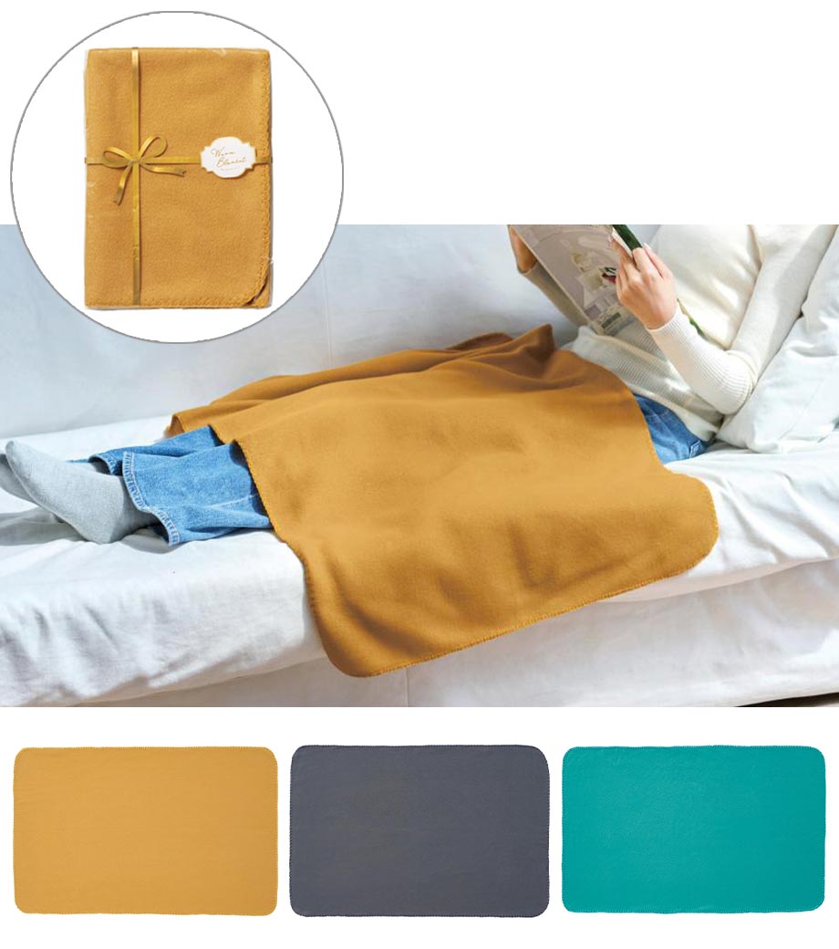 ひざ掛けに最適なサイズのブランケットです。自宅やオフィス、車内などで使えて便利。手触りの柔らかな素材で、冬の寒さだけでなく夏の冷房対策にも使えます。温かみのあるチェック柄。価格以上のお得感があり、配布する側もされる側も嬉しい、必ず使って頂けるアイテムです。金融系の成約キャンペーンノベルティにおすすめです。